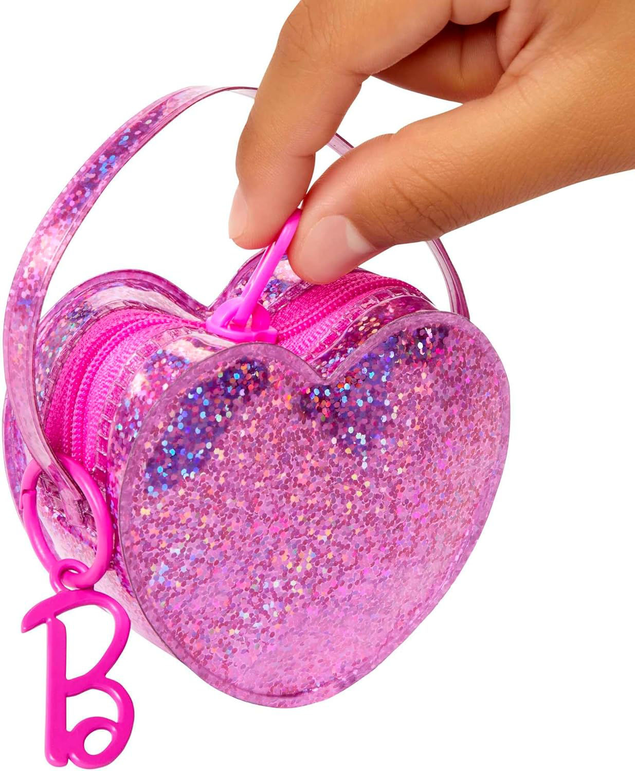 Queste borsette per accessori offrono un'esperienza di moda completa con abiti e accessori Barbie che si coordinano perfettamente e con tanto stile.Ogni borsa si distingue per i tessuti lucidi, iridescenti o scintillanti, così che la bambola Barbie possa fare una dichiarazione di stile favolosa con la sua borsa grande e il suo stile coordinato. Bambola non inclusa.Riponi l'outfit e i cinque accessori inclusi all'interno per giocare ovunque. Le borse sono dotate di chiusure funzionali e ganci in plastica a forma di "B" per permettere alle bambine di appenderle ai propri zaini.L'abito incluso presenta dettagli di alta qualità, come fantasie audaci, tessuti lucidi o finiture scintillanti. Le bambine adoreranno vestire e personalizzare la loro bambola Barbie con un nuovo stile.Gli accessori includono elementi di stile come gioielli, occhiali da sole o scarpe, nonché oggetti per creare storie personalizzate per ogni tema, come una macchina fotografica o un tablet.
