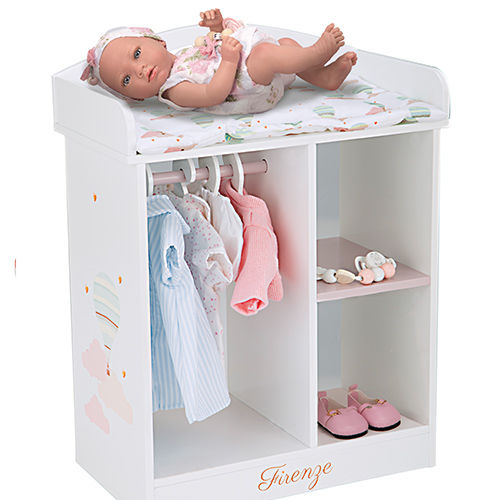 Fasciatoio in legno della collezione FIRENZE. Include quattro grucce e trapunta. Dimensioni: 37x20x48 cm.