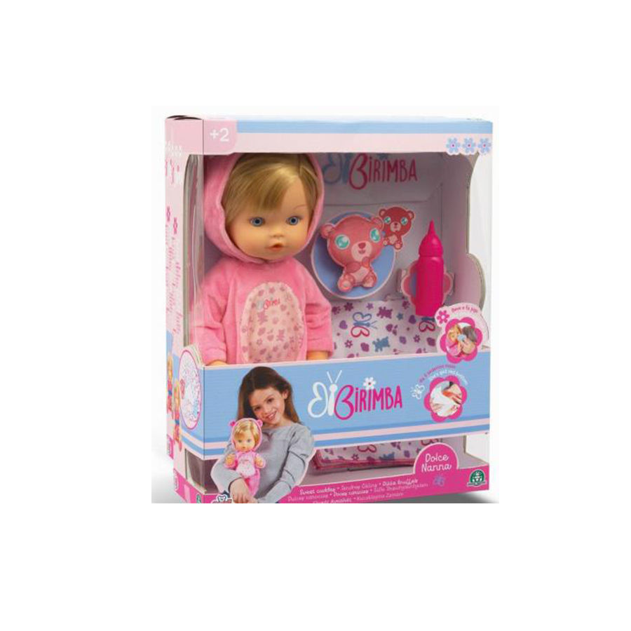 Birimba è pronta per andare a nanna con la sua calda copertina e il suo pupazzino. La bimba potrà divertirsi a giocare a fare addormentare la sua Birimba con tante coccole. Birimba fa pipì e il sederino diventa rosso. Con la salviettina o sotto l'acqua il rossore scompare! Inclusi nella confezione il pannolino, la salviettina, il biberon, la copertina e l'orsacchiotto