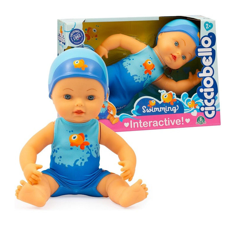 Cicciobello Nuotatore: Scoprite il nuovo giocattolo che aggiunge un tocco di magia al gioco d'acqua. Cicciobello ora può nuotare realmente, offrendo un'esperienza unica e coinvolgente per i vostri bambini.Movimento Naturale: Attivate il nuoto di Cicciobello semplicemente ruotando le sue braccia. Questa funzionalità intuitiva è perfetta per stimolare l'interazione e la partecipazione attiva dei bambini.Design Pensato per i Più Piccoli: Cicciobello è stato creato pensando alla sicurezza e alla facilità d'uso per i bambini. Il suo meccanismo manuale garantisce ore di divertimento senza complicazioni.Stili di Nuoto Vari: Insegnate ai vostri bambini il divertimento della varietà! Inclinando la testa di Cicciobello, i bambini possono passare dallo stile libero al dorso, ampliando le possibilità di gioco.Pronto per l'Acqua: Con un colorato costume e una cuffia abbinata, Cicciobello è l'ideale compagno di giochi acquatici, sia in piscina che al mare, promuovendo il gioco all'aperto e l'attività fisica.Compagno di Crescita: Oltre a essere un giocattolo divertente, Cicciobello aiuta i bambini a sviluppare abilità motorie, stimolare la creatività e l'immaginazione, accompagnandoli nella loro crescita.