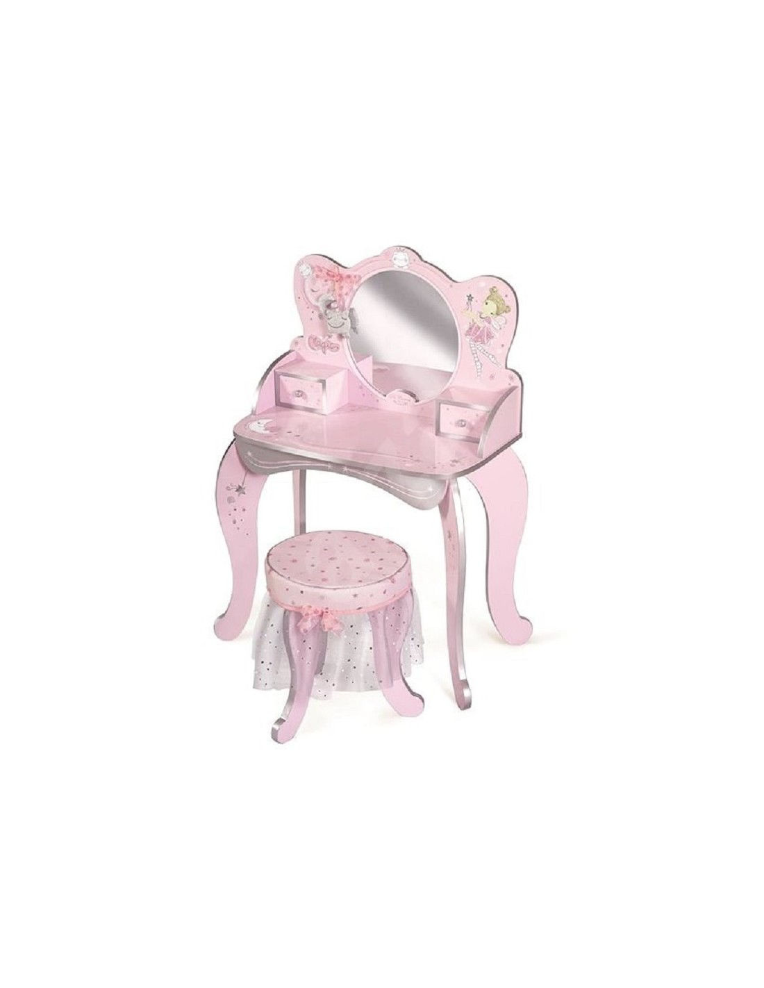 SPECCHIERA CON SGABELLO Toilette in legno con specchio, sedia in legno e accessori Magic MariaMarca: DE CUEVAS