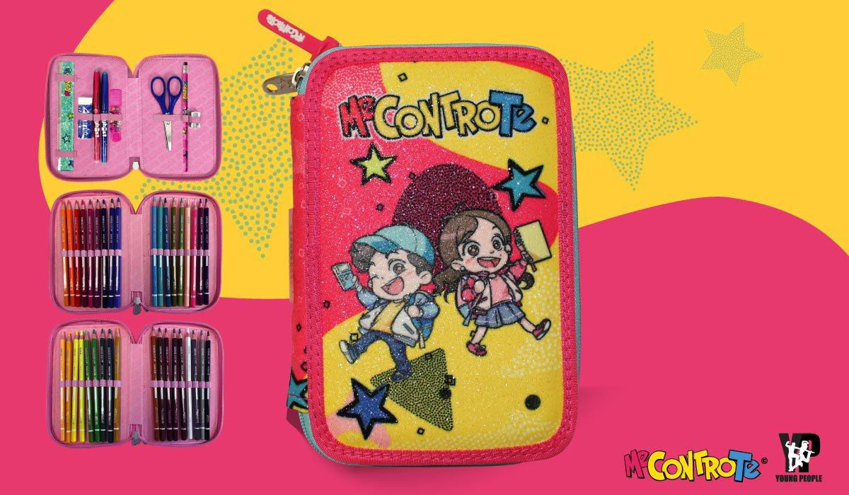 L'astuccio 3zip Me contro te by Young People è l'accessorio immancabile in ogni corredo scolastico. Il modello 3zip è il classico astuccio per i bimbi delle elementari che possono tenere organizzato in 3 scomparti chiusi tutto il materiale di cancelleria. I materiali sono altissimo livello con tessuto resistenze agli strappi stampe brillanti cerniere in tono con la grafica del prodotto. L'interno è una SUPER NOVITA' riempito con 36 pastelli TintaUNITA dai colori super brillanti con una robustissima mina da 4mm ideale per i nostri piccoli artisti, due penne cancellabili blu/rossa Ghost e il necessario per il disegno di precisione.