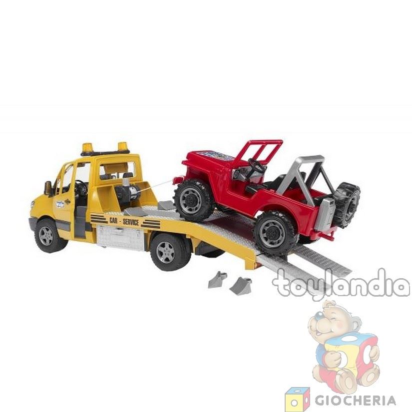 Riproduzione Bruder di Carro Attrezzi Mercedes Benz Sprinter con modalità luci e suoni. Piattaforma riprodotta nel dettaglio in base all'originale. Porte con rivestimento interno e modalità luci e suoni. Con il verricello è possibile liberare i veicoli anche nelle condizioni più difficili. Rampe e cassette degli attrezzi laterali per riporre i pezzi. Jeep inclusa nella confezione.