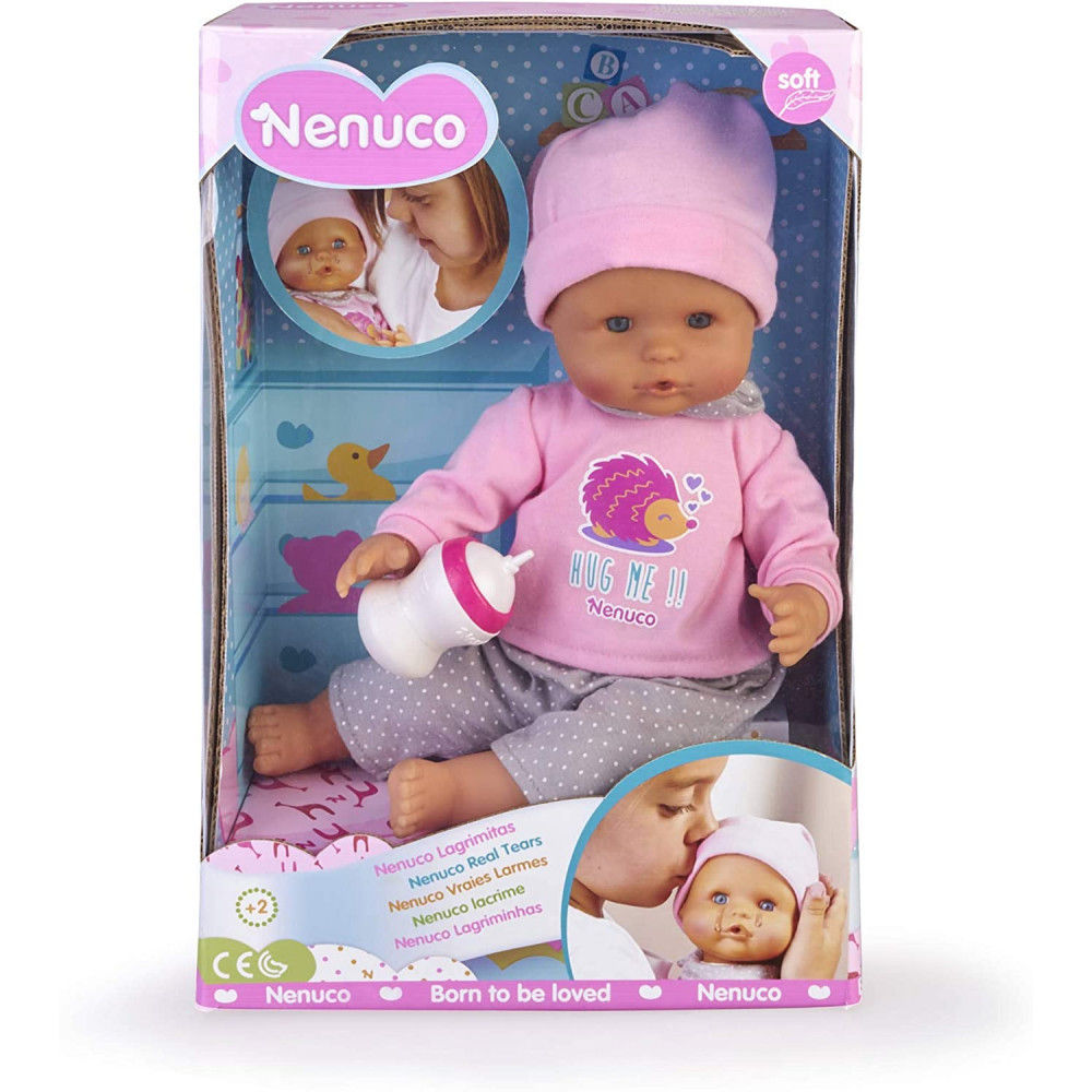 Nenuco lacrime è il nenuco più morbido e tenero, che piange con lacrime vereDopo averle dato il biberon, se le stringi il braccio piangerà con lacrime vere; è morbido e ha un pigiama e un cappello molto morbidoNenuco include una biberon riutilizzabile; indossa un pigiama 2 pezzi e un cappello morbidoUna bambola morbida, 35 cm; non occorrono pileRaccomandato per bambini con età superiore di 1 anno; aiuta a migliorare il coordinamento e l affettività emotiva