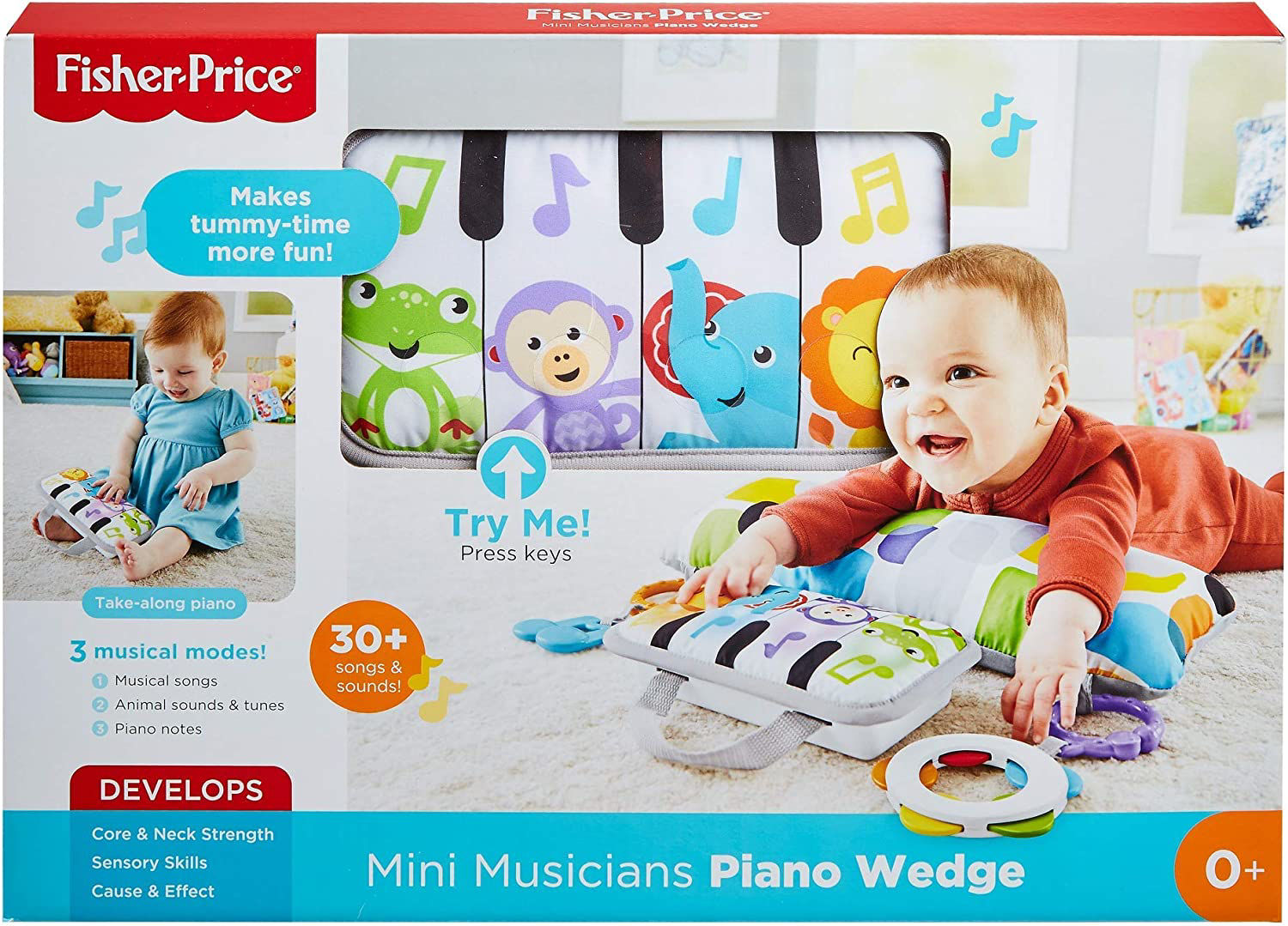 Cuscino per il gioco distesi sul pancino con pianoforte morbido rimovibile, nota musicale mordicchiabile e tamburello clac clacIl morbido pianoforte risponde al tocco del bambino con luci, musica e suoni, intrattenendolo mentre gioca disteso sul pancino10 minuti di musica con 3 modalità di attivazione: prolungata, note del pianoforte vere e simpatici versi degli animali con una breve melodia?Pianoforte, dentaruolo senza BPA, tamburello clac clac facile da rimuovere per usarlo separatamente, anche per i bambini più grandi