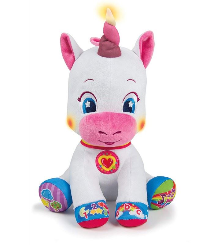 Unicorno peluche interattivo per giocare in un mondo di dolcezza. Questo tenero unicorno farà divertire i bambini con tanti effetti sonori e luminosi e li porterà alla scoperta delle prime lettere e dei primi numeri in modo facile e coinvolgente. Sviluppa la percezione visiva, uditiva, la manualità e il linguaggio.