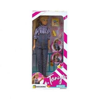 Tanya aspetta il suo bebe nel pancione e si prepara alla vita da mamma. Un tenero bebe con gli accessori dedicati alle prime cure sono inclusi nella confezione.