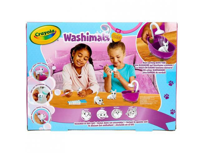 Età consigliata: +3 anni. I nostri Washimal sono tornati con un nuovo set di attività, Colora, pulisci e colora di nuovo. Usando i pennarelli lavabili inclusi nel set per scatenare la tua creatività hai i tuoi cuccioli, puoi creare tanti nuovi stili e trasformarli in quello che vuoi, creando fantastiche storie in compagnia di Washimals. Con il casco incluso nella confezione puoi lavare i tuoi cuccioli così da poterli riutilizzare.